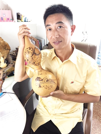 没有任何经验,没有专业培训,王艳山烙了一个多月,竟然真的能把一个个葫芦烙的有声有色,意趣盎然。