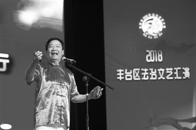 西罗园街道选送的现代评剧《梦惊三板》,体现了国法家法对贪污腐败的零容忍;幽默诙谐的普法小品《和谐家园》,展现了基层司法行政工作者的风采;花乡的音乐快板《开门红》,展现了北京最大的农产品批发市场依法经营的日常……本次汇演还采取线上线下同步进行的方式,在“丰台法宣”官方微博进行同步直播,未能亲临现场的群众足不出户就能通过网络观看到法治文艺节目。