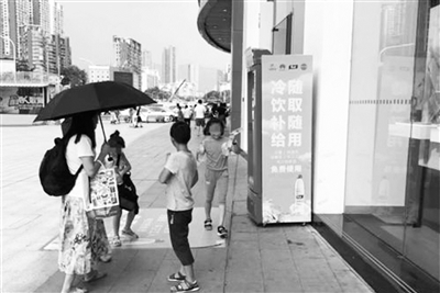 日前,福州街头出现了“爱心冰箱”,免费向户外工作者提供冷饮,此“爱心冰箱”效果如何呢?日前,有网友在网上爆料称,在宝龙城市广场,有小孩随意从“爱心冰箱”内取用矿泉水,并配发现场图片。图片显示,画面中3个小孩分别从冰箱内拿了好几瓶矿泉水,其中一个小女孩一人就拎了3瓶。(8月20日东南网)