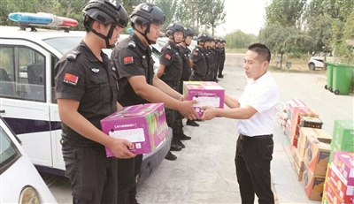 7月4日,北京京城保安服务有限公司工会主席王凯敏亲自带队,带着高丽营镇总工会及单位工会精心准备的“清凉包”,为炎炎夏日仍坚守在一线岗位的保安队员送去“娘家人”的关怀。每到一处,他都耐心询问保安队员的日常生活、工作状况,叮嘱他们在高温季节一定要保重好身体,同时敦促保安人员战胜酷暑、尽职尽责、决不放松站好每一班岗,为构建和谐首都,营造良好社会环境,贡献自己的力量。