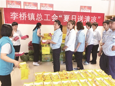 早在今年6月份,区总工会就印发了《关于做好高温季节职工劳动保护和安全生产工作的通知》,要求各级工会组织积极行动,采取多种有效措施,切实将防暑降温与劳动保护工作落到实处。刚刚进入到酷暑7月,全区各级工会组织便立刻行动起来,为各行各业的一线职工送去防暑降温物资,将“清凉”实实在在地吹进每一位职工心里。