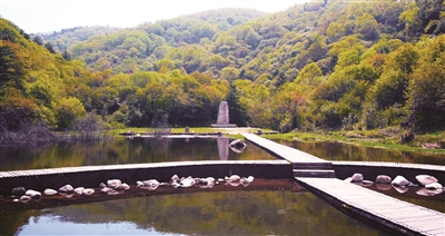 嘉陵江森林公园因水得名,更因水著名。在景区徒步,也是一次探江寻源的过程。那一条从山林中蹿出的江水如一个谜似,吸引着我们的脚步不断向前。转了个弯,突然就见一条飞练,从20米高的河床断崖上跃落,雾气腾空,声势骇人地砸出一个面积约800平方米的水潭。四周群山环抱,浓郁蔽日,潭水如墨,据说达12米深,故名黑龙潭。被喻为嘉陵江第一瀑的“飞云瀑”,却与黑龙潭的瀑布完全不同。它从密林中沿着河床缓缓流出,如一朵云似依壁倾泻而下,行云流水间腾起水雾氤氲,尽显飘逸、静谧之美。