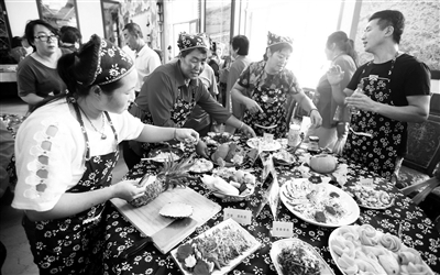 近日,延庆区四海镇举办了“四海味道”民俗户花宴制作大赛。当天,来自四海镇20户民俗户用各类花卉制作菜肴、面点、甜品,比拼“花宴”。本次比赛中的获奖菜品,还将在四海镇内民俗户和高端民宿推广,并在明年世园会期间向游客推出特色菜肴。本报记者 陈艺 摄影报道