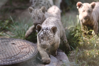 近日,三只憨态可掬的小白虎在北京野生动物园亮相。三只小白虎的爸爸叫“亮亮”,6月18日“游客拿石头砸老虎”事件,让白虎“亮亮”步入公众的视野。此次“亮亮”携妻子“丽丽”和它们的三只虎宝宝首次与游客见面,吸引了众多参观者。白虎非常稀有,由于缺少保护色,白虎在自然界非常难存活,在野外已经灭绝。