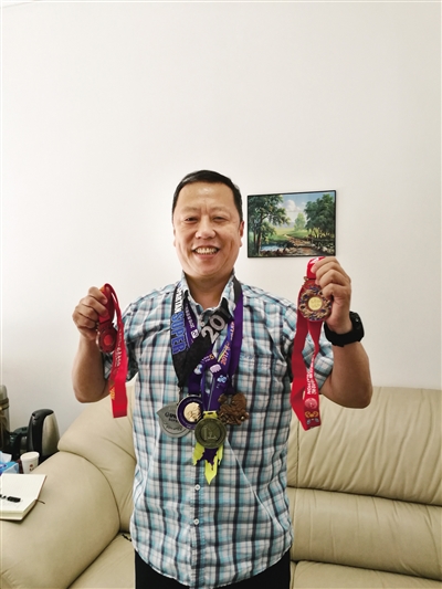 “厦门马拉松、北京马拉松、斯巴达超级马拉松、深圳马拉松、泰山马拉松……我跑马拉松的时间不长,但获得的奖牌很多,这些奖牌都是沉甸甸的有分量的。”北京牡丹电子集团有限公司副总裁傅东翔说。