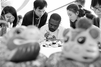 昨天,在中非合作论坛北京峰会新闻中心,代表北京特色的非遗团扇、十二生肖和京剧脸谱现场体验绘制吸引了很多非洲记者前来体验。据悉,在新闻中心举办的非洲图片展和魅力北京图片展,让人们更多地了解非洲、了解北京。本报记者 周世杰 摄影报道
