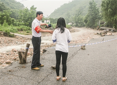 雨情就是命令,郭继东接到电话后立即从城区驱车赶往村里。还没有进入村里,暴雨如注,车无法前行。郭继东索性将车放在路边的高地,徒步回村。走了一段,在路上他遇到镇党委书记陈祥庶。由于雨下的太猛,陈书记也无法前行,只能就近先去冯家峪镇的西庄子村指挥。在西庄子村,郭继东帮着指挥村两委紧急转移村民。