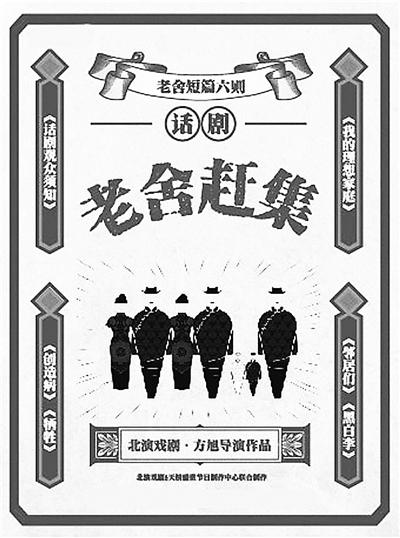 话剧《老舍赶集》是北演戏剧与方旭在继《二马》之后推出的又一力作,挑选了六则极具老舍先生幽默风格的短篇。