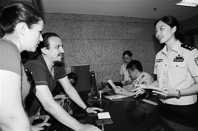 图为外籍员工在北京市公安局出入境管理局咨询相关政策。
