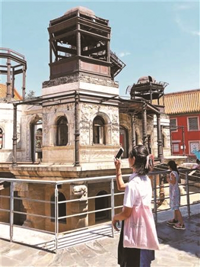 为了给游客提供更好的游览体验,故宫博物院还专门在延禧宫前竖立了一块标志牌,并在上面发布了延禧宫内主要建筑——灵沼轩的虚拟现实体验二维码,游客扫描二维码后,就可以通过手机全景观看灵沼轩修复后的样子。一名体验过虚拟观看的网友表示,通过对比建筑的原本设计和现存遗址,更能够感受到历史的兴衰、时间的更替,“特别感慨。”