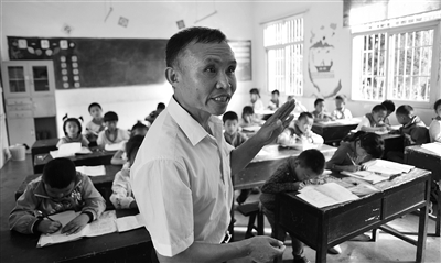 9月5日,在黔西县大关镇小坝小学,郑君学在给学生上课。
