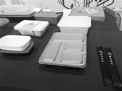 在征集活动上,记者注意到展示台上展示着不少外卖、食品、快递等各类绿色包装。据了解,这几款参展产品其中一些小方盒的用途是炒菜类的外卖包装。这种材料75%是纸,可降解,另有一些铝箔和塑料等,都可以回收、非常环保。此外,活动现场还有一种箱子包装也很特别。据了解,它是由麦秸做成,只使用少量的胶,没有污染。而且强度完全够,带着这个箱子来参展的工作人员介绍说它至少能承重2吨。