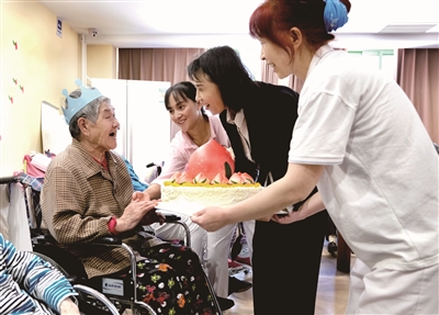 | 中秋节,朝阳门街道的“天颐养老院”专门为王鸿清等4位老人,举办了一场别开生面的生日祝寿会。 |