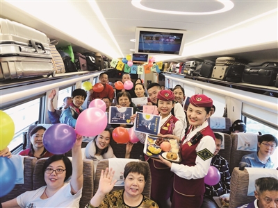 | 中秋节期间,为了让旅客体验更美好的旅途,承担G89次值乘的石家庄客运段“倾心”乘务组在列车上开展了庆中秋活动,和旅客一起分享中秋月饼。 |