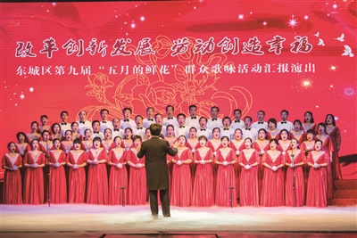 一音古琴、一弦琵琶、一舞蹁跹、一声绕梁……在东城区“五月的鲜花”群众歌咏活动中,职工身边的一台台演出汇集成一场场绚丽多彩、精彩绝伦的文化盛宴,职工文化成为传递社会正能量的重要源泉。