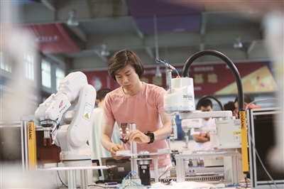 不久前,由开发区总工会联合开发区人劳局、投促局举办的第二届开发区行业技能竞赛——工业机器人技术应用竞赛,在北京市工业技师学院南校区世赛集训中心拉开帷幕,为期两天的竞赛吸引了来自SMC、北京奔驰、和利时等区内多个高精尖企业的近30名优秀技能工人参与,竞争“开发区行业技术能手”称号。经过激烈的角逐,比赛的一二名分别是由SMC(中国)有限公司的李东亮、王龙获得,第三名是中冶赛迪电气技术有限公司的高俊峰,第四名由富智康精密组件(北京)有限公司汤德年获得。技术能手是如何炼成的?记者采访发现,当勤奋成为一种习惯,当优秀成为一种品质,当创新成为一种动力,普通的岗位也能做出不凡的成就。