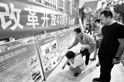 据了解,大雅宝社区纪念改革开放四十周年图片展会集中在社区外部展览三天,后续将在社区内部展览一个月。