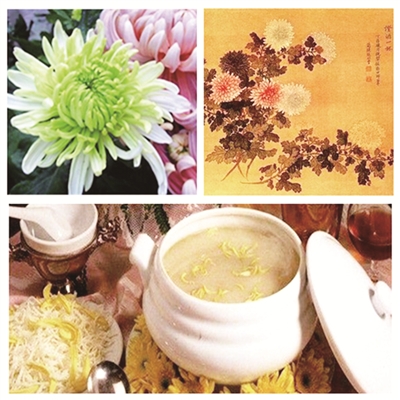 三是重视菊花育种。有记载:“直至黄花时节,有佳种三五新近发现,太后极为珍异,遂命如形绘之,以订菊谱之阙”。据说她最喜爱绿菊,而且她还能“于花未苞时预道花之形色”,甚至“能于菊之未萌芽时,道其花之形与色”。传说不足信,不过慈禧爱菊可见一斑。慈禧不光赏菊、种菊,而且还食菊、用菊。因为粗识药性,慈禧老年时常常将菊花作为她的特殊饮食,以保持青春年华和长生不老。据说每逢金秋时节,慈禧就亲自指挥宫娥太监到御花园,采摘花瓣肥厚的菊花,以肉汤、鸡汤、生鱼片和菊花一起吃,每次都胃口大开,吃下很多的鲜花。