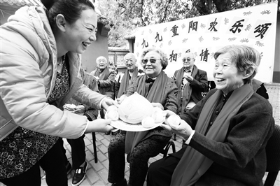 重阳节到来之际,昨天,丰台区南苑街道西新华社区举办了主题为“九九重阳欢乐颂 棚改一家情意浓” 敬老活动。现场,社区老人品尝重阳糕、大寿桃,畅谈棚改新生活,社区对老人们表达了关怀,让老人感受到社区大家庭的温暖。