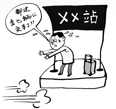 10月8日,四川通江县万象新天地公交站牌下,胡先生从下午4点等到近6点,近两个小时,7辆公交车从他身旁驶过,无一停靠。无奈之下,胡先生走到了下一站台,才坐上公交车。通过询问公交车驾驶员,他得知:自己竟然遇到一个假站台。(10月15日《成都商报》)□王铎