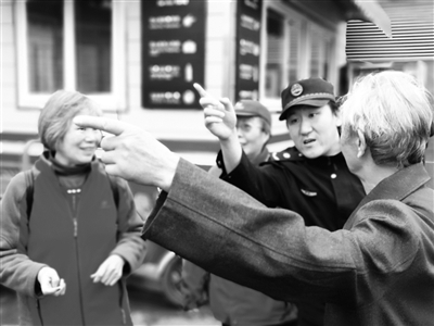 “您往前走两步就到了!”城管人员李博赶忙上前一步给大爷指路。