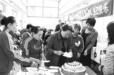为弘扬中华民族爱老敬老的优秀传统美德,重阳节前夕,怀柔区富商市场工会委员会来到北房镇南方村和美安吉托老所进行节日慰问。活动当天,富商市场工会为10位老人送上生日祝福和蛋糕。本报记者 崔欣 摄影报道
