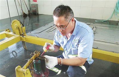 二队维修班接报后,刘新光带领应急小组第一时间赶赴现场。“当时地坑里污水横流,臭味难闻。”刘新光赤膊站在及腰深的满是污水的地坑内,徒手作业清理造成堵塞的杂物,最终排除了险情。