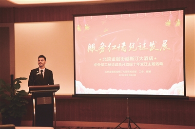“40年,光辉岁月弹指一挥间,40年,中华大地沧桑巨变。改革开放40周年中国发生了翻天覆地的变化,这些变化在我们的幸福生活中得到了充分展现”。在北京金融街威斯汀大酒店党支部组织的“服务红墙见证发展——北京金融街威斯汀大酒店中外员工畅谈改革开放40年变迁”的活动现场,主持人铿锵有力的开场词吸引着来到现场的酒店中外员工的注意。
