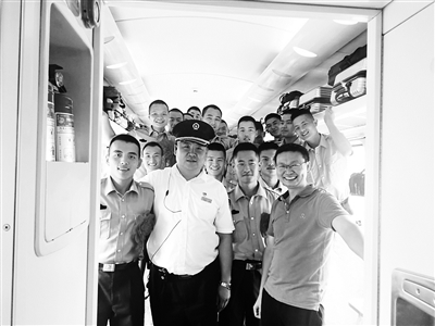 五年前,他刚开始担任列车长,有天夜里一位重患旅客到站下车,病人行走不便,家属犯了难,小声嘀咕了一句:“没有担架这可怎么办呀?”一旁的赵海峰也没多想:“这儿呢!”大家齐刷刷地把目光投向这近200斤的小伙子身上。