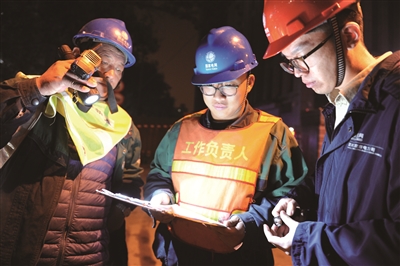 当人们进入梦乡的时候,有一群人才刚刚开始工作,在核心区一些主要道路上,都能看到他们的身影,他们就是国网北京电力公司核心区架空线入地工程的施工人员。