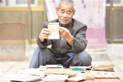 近日,河北省藁城市增村镇牛家庄村,76岁的农民贾增文正在展示他的日记。60年前,贾增文开始写日记,至今一共写了108本。日记记录了老贾一家越过越好的生活,也见证了改革开放40年来,沧海桑田的农村变革。