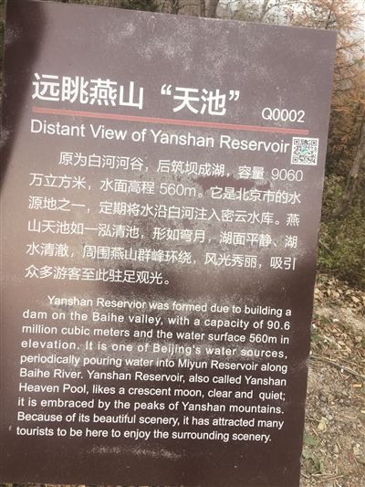 在北京城里驱车往北,直奔延庆,走昌赤路奔河北赤城方向,在京冀交界处,有一个巨大的水库,这便是燕山天池,正式地名叫白河堡水库。