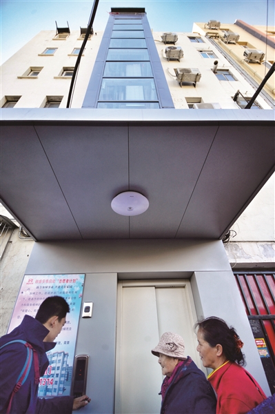 昨天上午,在东城区体育馆路街道天坛东里50号楼3、4单元门前,崭新的电梯玻璃幕墙已安装完毕,按照小区空间定制的两台电梯已经通过验收,开始试运行。据了解,这两部电梯是东城区体育馆路街道为该地区老居民楼安装的首部外挂电梯,均为垃圾道改建而成,即日起至今年12月31日居民可免费试用。(相关新闻详见第5版)