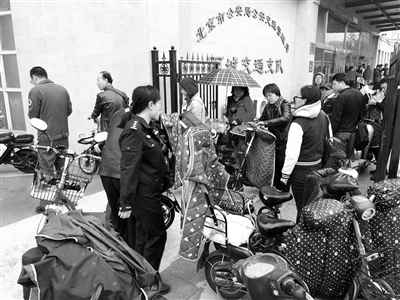 昨天,西城交通支队办公大厅外有10多位电动车主正在排队,准备给电动车上牌照。根据即将施行的《北京市非机动车管理条例》等相关规定,电动自行车需取得行驶证、号牌,方可在本市道路行驶。目前,不少人去非机动车登记站“扎推”上牌。现场工作人员介绍,市交管局明确了电动自行车的上牌时间,给市民一个较长缓冲期,即车辆所有人可于明年4月30日前到任意登记站办理业务。本报记者 孙妍 摄影报道