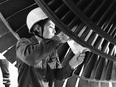 取设备扇叶上的附着物也是个“难活儿”,取样的人得戴着厚重的帆布手套一点点刮扇叶,一站就是两个多小时,脚都站得生疼。扇叶周围温度高、噪音大,夏季更是酷热难当,我们受不了时还要抱怨几句,田甜却从未抱怨过。看着纤瘦的她站在巨大的扇页旁,工作服被汗水浸透了,白皙的瓜子脸热得通红,额头缀满汗珠,我不由得感叹:“田甜,真没想到你是个吃苦耐劳的人。”她抿着嘴一笑:“跟师傅们比还差得远呢!”