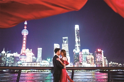 世界上第一个以“进口”为主题的国家级展会——首届中国国际进口博览会,将于11月5日至10日在上海举行。博览会吸引了130多个国家和地区的3000多家企业,有超过5000件展品在中国市场首秀。美丽的上海张开怀抱,迎接八方来客。图为一对青年男女在上海外滩拍摄婚纱照。(相关报道详见第6版)