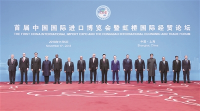 11月初的上海,风清气爽,秋意渐浓。上海国家会展中心开幕式主会场内,各国嘉宾齐聚一堂。上午9时45分许,习近平同捷克总统泽曼、多米尼加总统梅迪纳、萨尔瓦多总统桑切斯、肯尼亚总统肯雅塔、立陶宛总统格里包斯凯特、克罗地亚总理普连科维奇、埃及总理马德布利、格鲁吉亚总理巴赫塔泽、匈牙利总理欧尔班、老挝总理通伦、马耳他总理穆斯卡特、巴基斯坦总理伊姆兰·汗、俄罗斯总理梅德韦杰夫、越南总理阮春福、英国约克公爵安德鲁王子、国际货币基金组织总裁拉加德、世界银行行长金墉、世界贸易组织总干事阿泽维多等外方领导人一同步入会场。