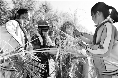近日,北京稻香湖景酒店丰收节之稻米飘香收割季开镰。活动现场吸引了百余名游客参与其中,上至六七十岁的老人,下至七八岁孩童,大家纷纷拿起镰刀,体验收割的乐趣。本报记者 孙妍 摄影报道