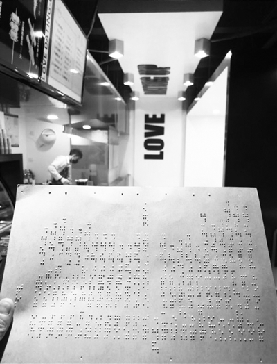 点菜靠摸,这样的盲文菜单对于一般消费者来说非常少见,但在南京老门东附近的一家小吃店里,店老板为了方便盲人点单,特意制作了一份盲文菜单。(11月8日《扬子晚报》)