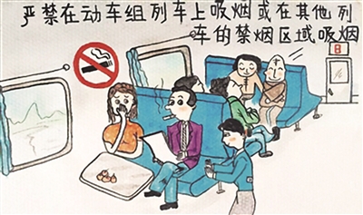 “未佩戴安全帽、防护绳等防护工具严禁登高作业;严禁在动车组上吸烟或在其他列车的禁烟区域吸烟;证件和现金应分开放,挎包揽在视线内;看着行李进入安检机后再通过……”一个个工作细节都被一幅幅漫画描述了出来。今年25岁的吕吏颜是呼和通信段呼和G网车间的一名工作人员,因为平时的工作与安全脱离不了关系,所以她习惯用漫画来记录日常的工作经历。