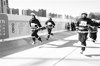 据了解,本届“金秋点兵”义务消防队技能大比武已经是连续第二年举办。此次比赛共有10支来自各子企业的参赛队伍,近百人参加。大比武共设单人手提干粉灭火器50米灭火、双人两盘水带连接、双人担架负重50米救生演练三个比赛项目。赛场上,各个参赛队员身手敏捷、操作熟练。提起灭火器、拔掉保险销、握住喷嘴对准火源根部、压下把手,动作连贯一气呵成;抛水带、连分水器、连水带和枪头,平日训练尽展眼底。经过近2个小时的激烈比拼,本次大比武活动共有9名选手获得单项奖荣誉,3家单位获得团体奖。通讯员 张云岚 贾艳双 摄