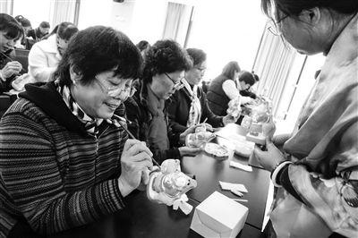 近日,在丰台区花乡造甲村市民学习中心,30多名社区居民为“兔儿爷”上色。经过一个多小时的精心彩绘,一尊尊神采各异、艳丽动人的兔儿爷就呈现在居民们手中。据花乡宣传部工作人员介绍,花乡各村、社区和市民学习中心,会陆续开展不同形式学习周活动,让全乡居民都参与到全民学习周活动中来,丰富社区居民的文化生活,共同建设和谐宜居花乡。本报记者 邱勇 摄影报道