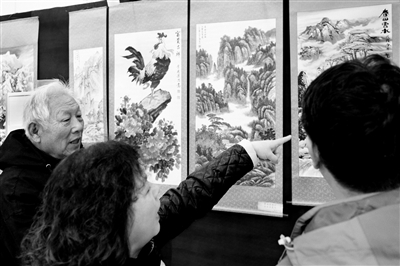 昨天,由东城区交道口街道总工会主办的第六届“美哉南锣”职工书画摄影作品展评,在街道文体活动中心举行。活动吸引了辖区企业的众多职工,他们既是观众又当评委,成为本次展评的最大亮点,职工在观看的同时选出了自己喜欢的作品。本报记者 边磊 万玉藻 摄影报道