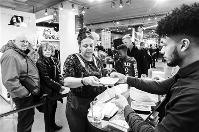 11月19日,主题为“美食·爱恋·上海”的上海美食节暨上海旅游推介会在纽约开幕。11月19日至21日期间,美食节将推出美食课堂、美食品尝等互动活动,并播放上海宣传片,向当地民众推介上海美食和旅游项目。图为在美国纽约梅西百货商场,活动参与者在上海美食节上排队领取免费提供的小笼包。