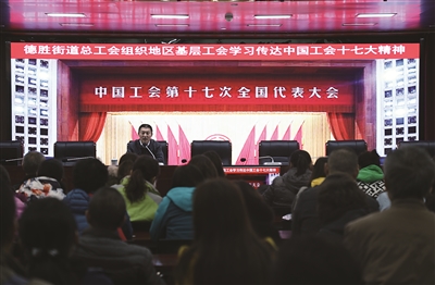 11月6日-11月8日,德胜街道总工会分批次在德胜街道地下报告厅组织地区基层工会开展学习中国工会十七大精神。共有来自地区100多家企业300余人参加学习。