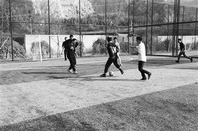 斜河涧村第一书记白勤告诉记者:“这块地以前是一个破厂房,经营过盒饭厂,做过群租房,后来被相关部门取缔了。”“疏解整治促提升”工作开展以来,妙峰山镇和斜河涧村采取镇村两级联动,和承包人共同谋划发展方向,秉承增白留绿,服务发展的原则,在区体育局的支持下,将此处改造成一个五人制足球场和一个篮球场,总共占地2000平方米,并面向社会开放。