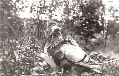 信鸽在整个一战过程中堪称“神奇动物”,英法两军分别使用了10万和3万只信鸽在各个战壕之间汇报战事、传递情报。德军为阻止信鸽传书,曾禁止在德占区放飞鸽子,违者立刻枪决。美国“一战百年”纪念委员会称,一只名为“亲爱朋友”的信鸽虽在1918年德军炮火中失去了一眼一脚,但仍不辱使命地为第19步兵师传信,拯救了194名美军性命,它的故事后来还被拍成电影《失落的战场》。在同盟军的信鸽军团中,一只名叫瓦扬的信鸽最为后人津津乐道。在德军进攻最为猛烈的凡尔登战役中,日均投下的炮弹多达8000枚,电话和电报都无法使用。陷入绝境的法国雷纳尔上校让瓦扬送出一封密信:“我们仍在抵抗,但是毒气进攻十分危险,我们要求紧急支援,这可是我最后一只信鸽了!”瓦扬不负众望地成功传出消息。战事结束,它被授予法国荣誉军团勋章脚环,名字也被写入国家功勋册。