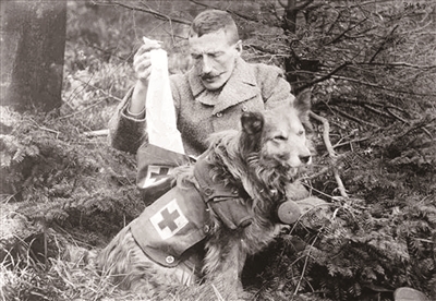 除了马牛驴这些大牲畜外,狗也在一战中得到广泛使用,仅法国就征募了20万条狗。法国电视台的纪录片称,这些狗经过特殊训练后能在交战时保持安静,不会乱跑乱叫暴露目标。马恩河战役中,如何在长达50公里的战线上快速发现并抢救伤员成为“救护狗”的专项工作。它们可以叼回士兵身上的一个物件(头盔、破布等),以此通知后方伤员数量并为救护员搜寻前者带路。1914年冬的孚日山战线异常寒冷,马匹被困在雪地里无法托运物资。上尉穆弗莱与中尉哈斯想出一个妙计,后来他们从万里之外的美国阿拉斯加找来440条雪橇狗,利用狗拉雪橇运输货物,成功解决了后勤难题。