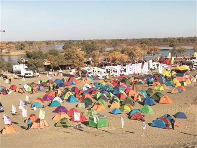扎营是露营大会的一项重要活动,在沙海中扎营你有过体验吗?2018中国体育旅游露营大会迎来了数十辆的房车队伍,夜晚的罗布人村寨有百余人在这里扎营。白天,金色的沙海里那百余个色彩绚丽的帐篷,炫目壮观。夜晚,却是另一番的灯火阑珊,不醉不休。