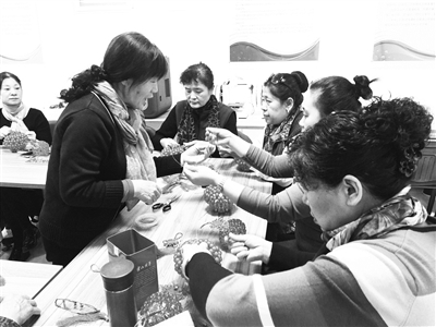11月30日下午3点,位于朝阳区呼家楼北社区的“殷金凤工作室”内,64岁的居民魏淑兰正在和社区巧手俱乐部的成员们一起制作串珠工艺品。这个成立于去年的俱乐部现有成员20余人,都是来自社区的居民。“社区一直很支持我们的活动,总帮着找场地。自从有了工作室,我们活动的地方更大了。”魏淑兰说。